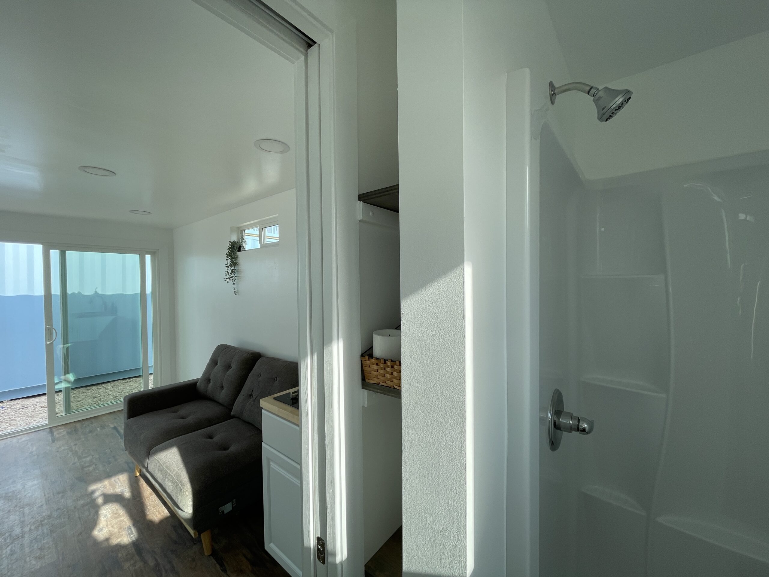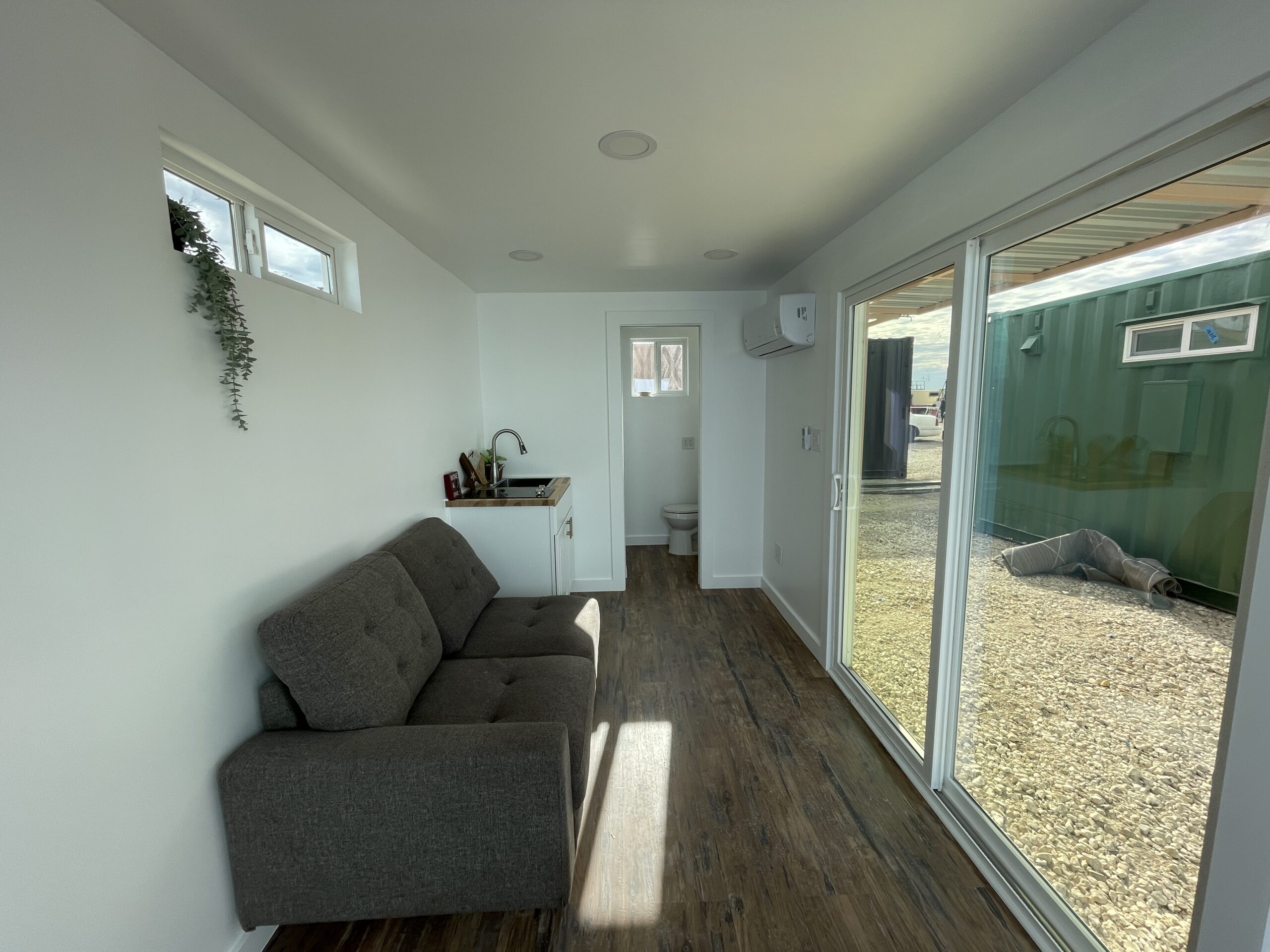 The Cleveland Model has a sliding glass door for entry and features an open layout to give you as much space as possible to build out the unit as you see fit.