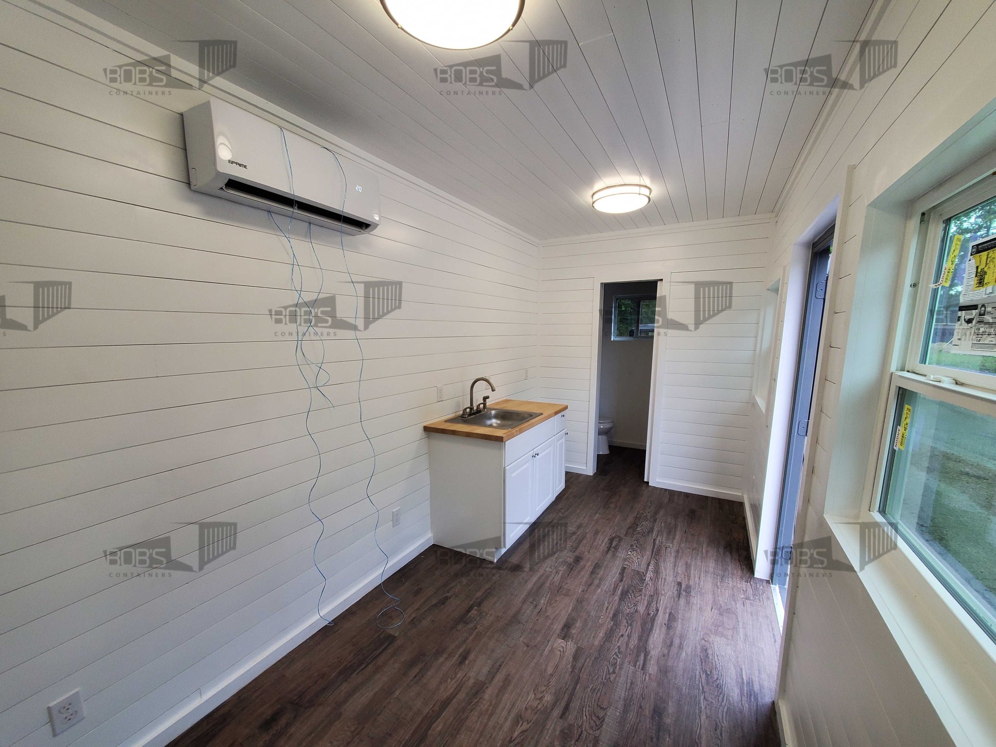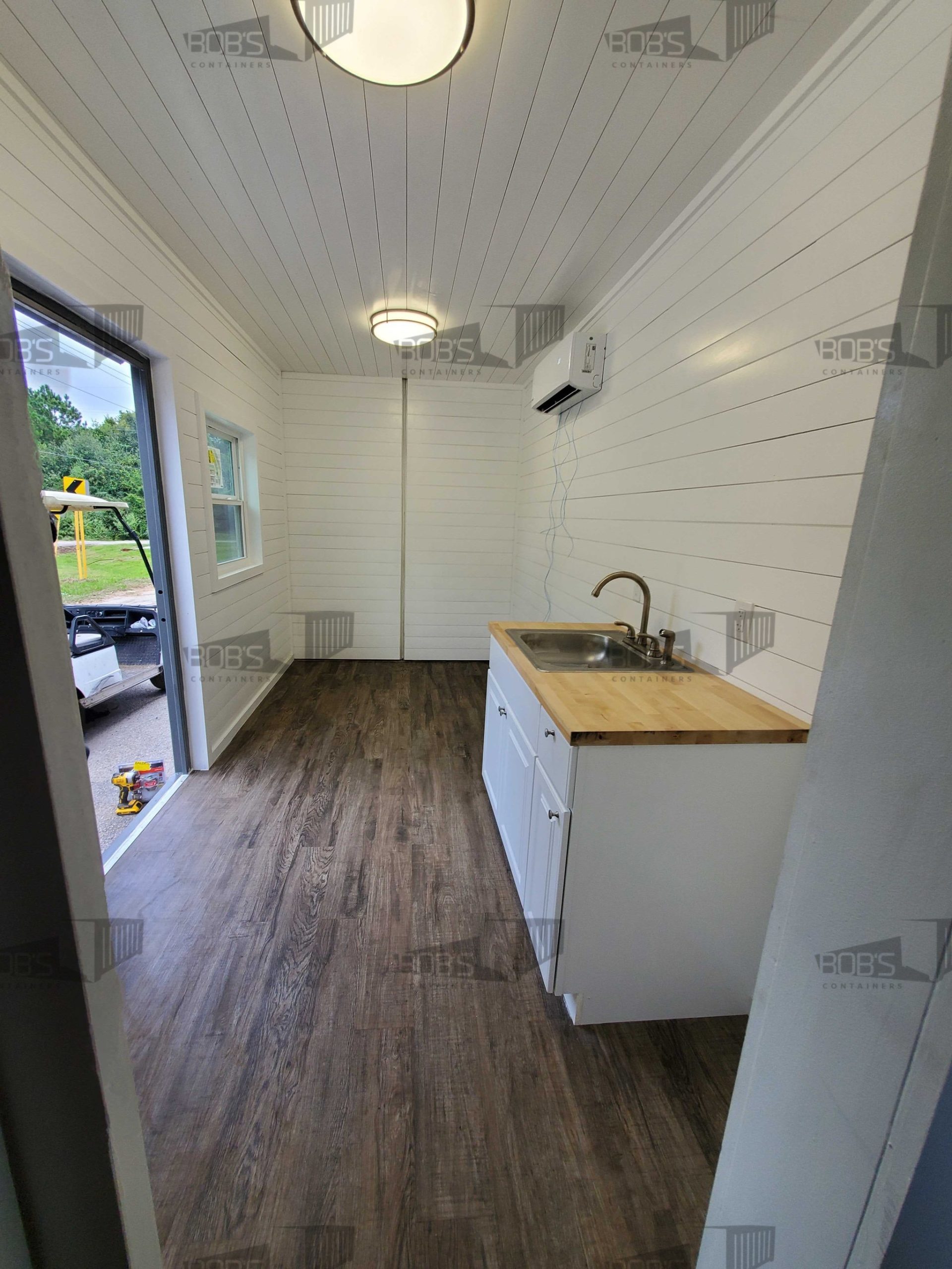 The Abilene model is one of our most popular 20 ft units. This basic build has the door in the center of the unit, a three-quarter bath, and an open area for you to build the space as you see fit.