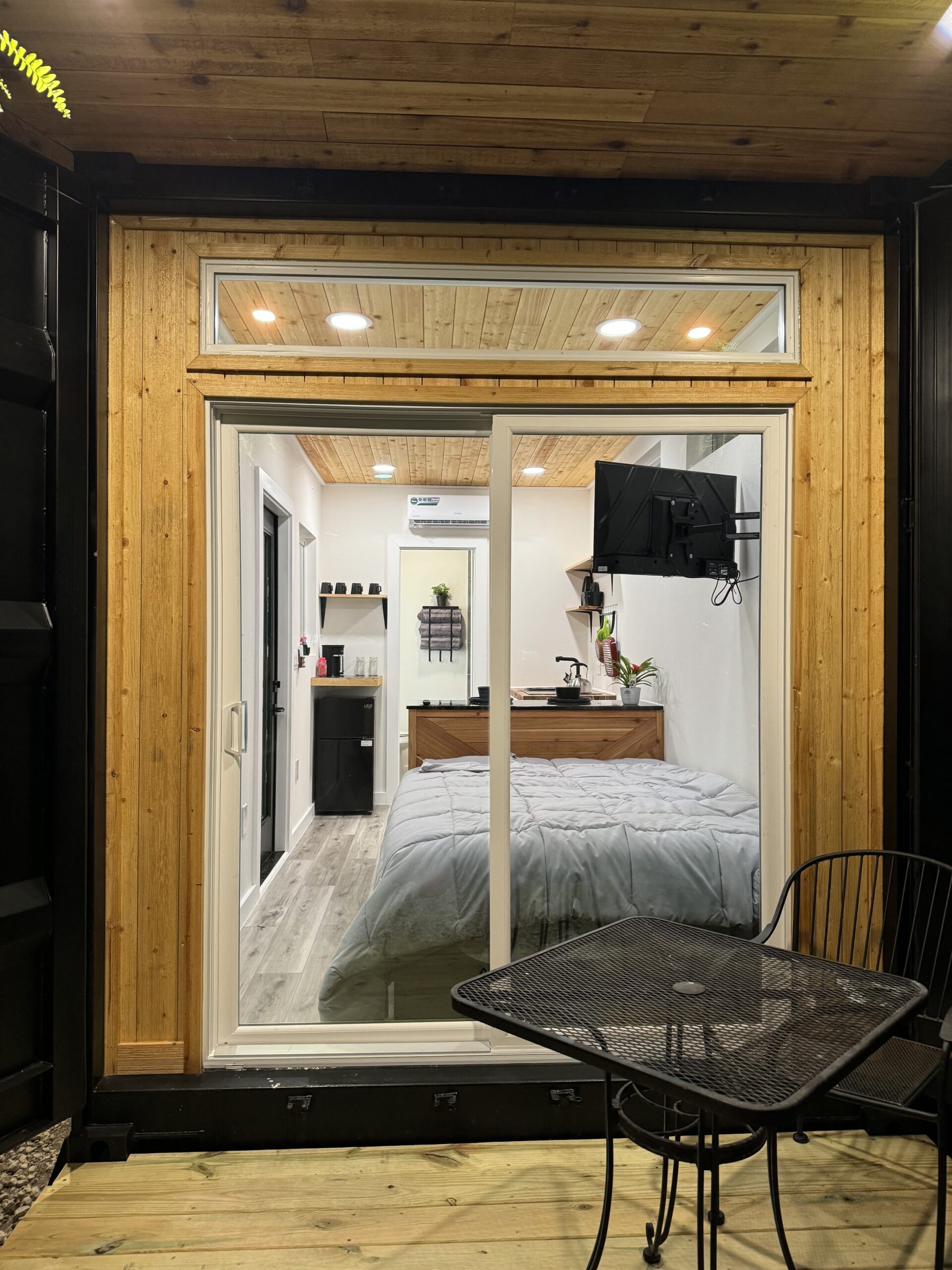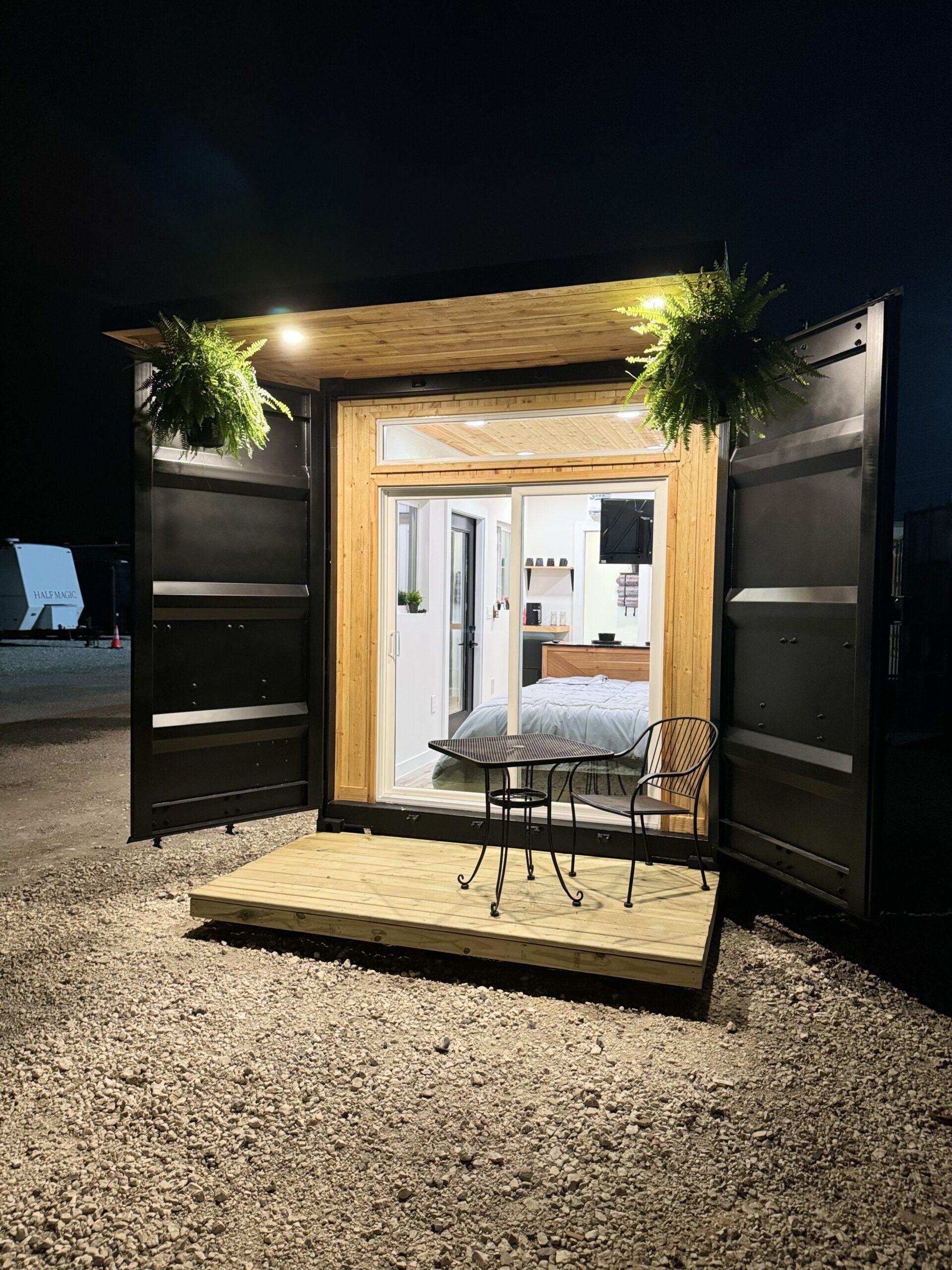 This custom shipping container duplex has a ton of awesome features including a breakfast nook, tile shower, upgraded mirrors and more!